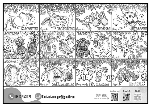 Retrouvez comme chaque année le calendrier à colorier, cette année il est sur le thème des fruits de la Réunion. A chaque mois son illustration accompagnée de l'agenda avec une partie note. Vous trouverez aussi un calendrier des anniversaires à compléter. Les perforations vous permettrons de l'accrocher si vous le souhaitez.